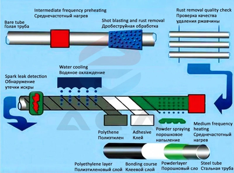 بناءً على طلب العميل، أنواع طلاء الأنابيب: FBE، 2lpe، 3lpe، 2lpp، 3lpp.